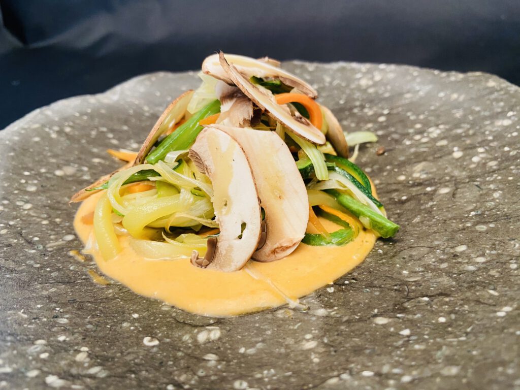• Alcachofa, mayonesa de ibéricos y yema en tempura