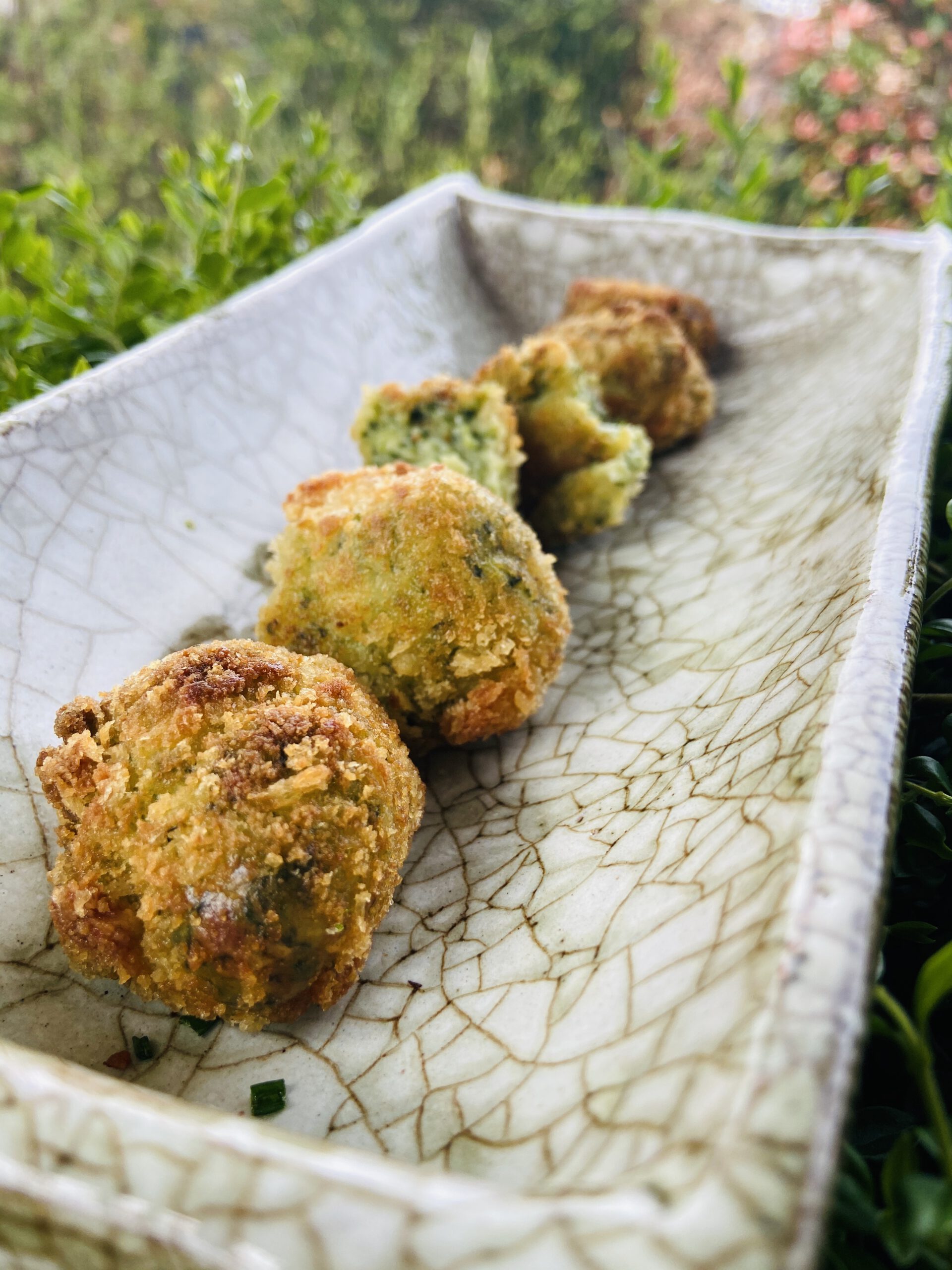• Alcachofa, mayonesa de ibéricos y yema en tempura